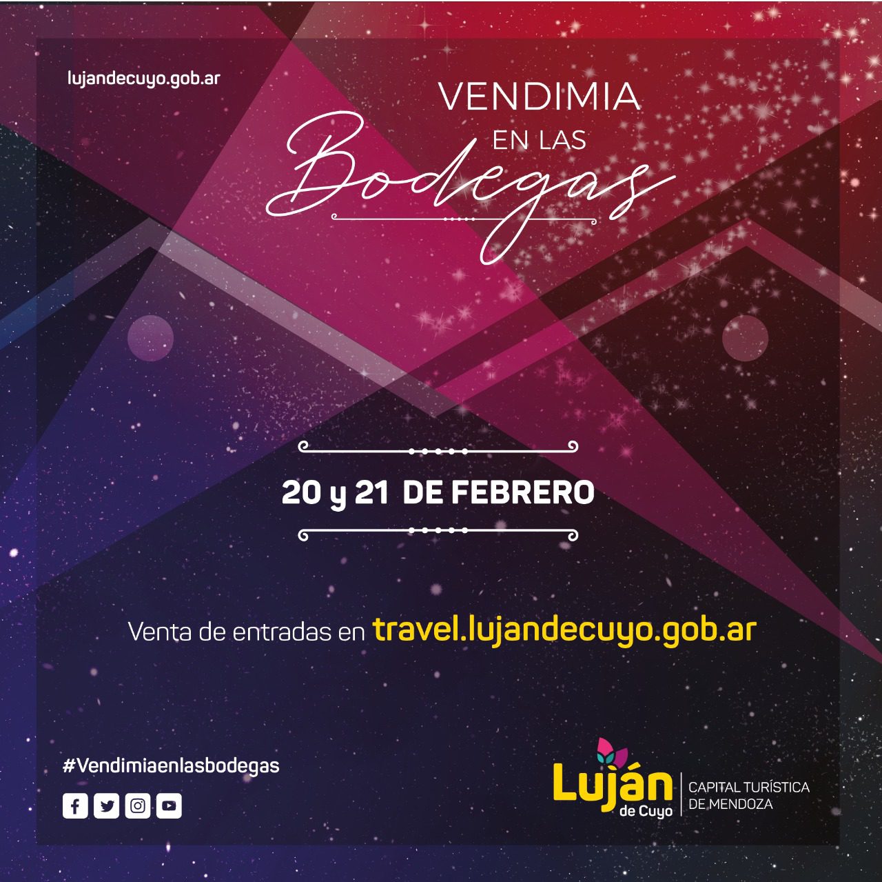A partir del próximo lunes 8 de febrero los interesados en asistir a la original propuesta de Luján de Cuyo, postulada como una innovación cultural en la provincia, podrán adquirir sus ingresos, desde las 9hs, a través del portal https://travel.lujandecuyo.gob.ar. El costo de los tickets, consensuado con todas las bodegas intervinientes, será de $1200 que incluirá estacionamiento, gastronomía, espectáculo y Fiesta de la Vendimia Departamental (cupos limitados por protocolo sanitario).
