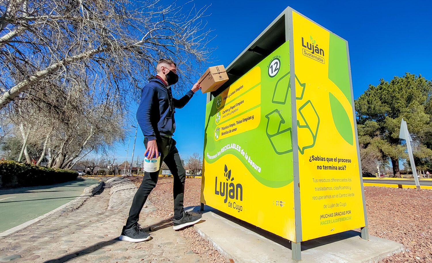 Estos contenedores, colocados en 28 puntos neurálgicos de Luján de Cuyo, tienen como función específica agrupar residuos secos para, posteriormente, clasificarlos y simplificar la tarea del reciclaje que se desarrolla en el Centro Verde Luján. Recordemos que este organismo se trata del primer edificio de clasificación y diferenciación de los residuos sólidos urbanos que posee la provincia y que, además, es conducido por antiguos recuperadores urbanos que realizaban esa práctica en las calles del departamento. Ahora, contenidos bajo la Cooperativa la Fortaleza de Mi Tierra, estos trabajadores se encuentran cumpliendo estas funciones en un marco de seguridad y formalidad.