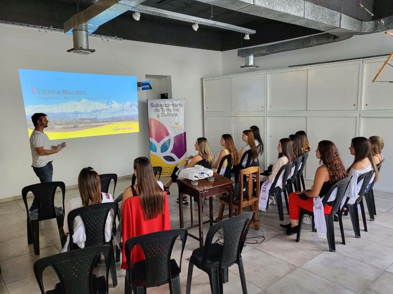 En esta oportunidad, el Director de Turismo de Luján de Cuyo, Licenciado Guillermo Barletta, fue el responsable de dictarles una capacitación a las 15 soberanas sobre las cualidades y puntos a destacar del territorio departamental como destino turístico. En concreto, el disertante explicó todos los productos y servicios turísticos que se despliegan en el escenario lujanino: bodegas, aventura, rutas gastronómicas, alojamiento, entre muchos otros. A su vez, se trataron experiencias que se viven en Luján vinculadas a la eno-gastronomía y de turismo activo y naturaleza.
