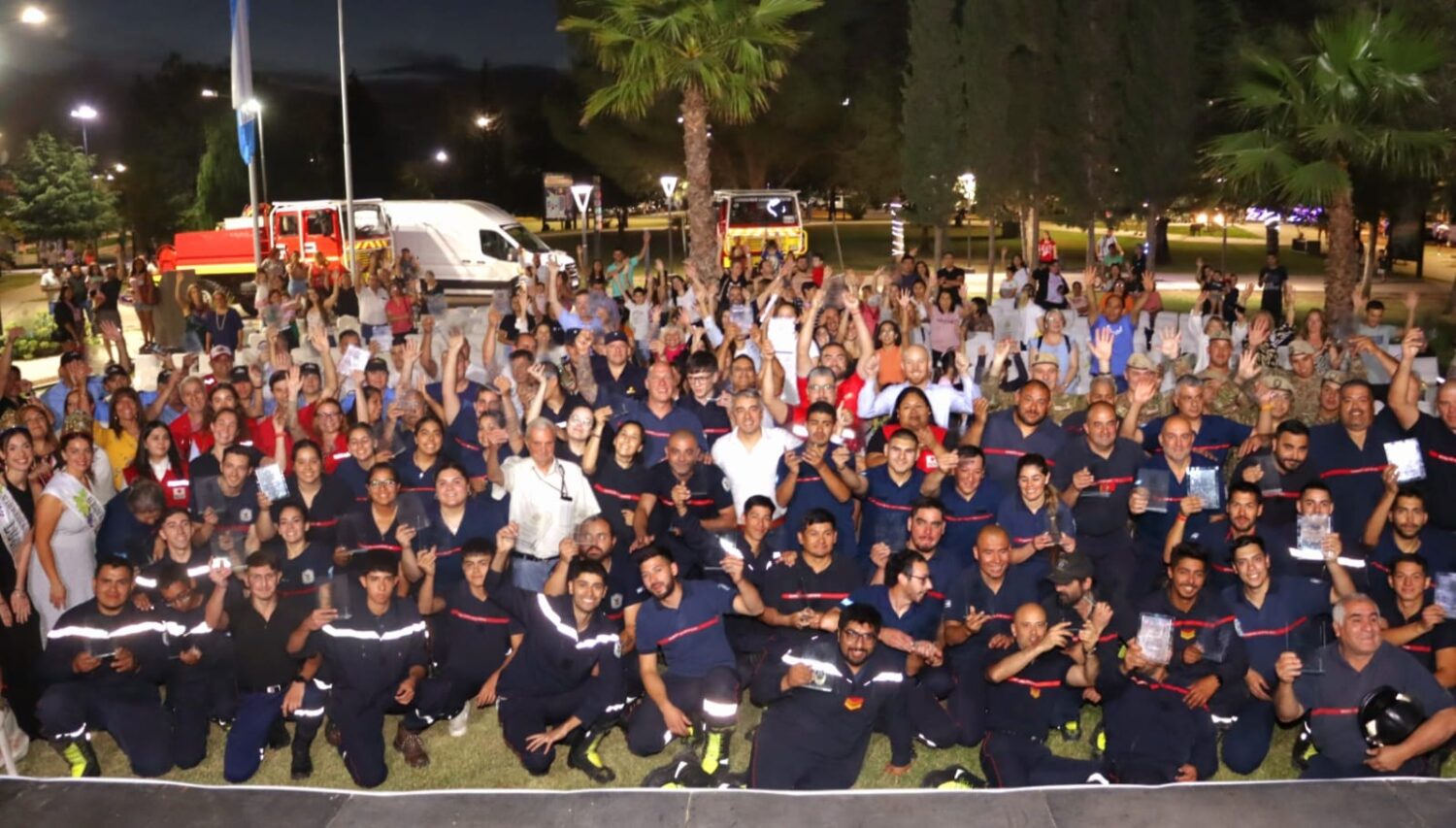 El actual Jefe Comunal lujanino, Sebastián Bragagnolo, y el Jefe de Gabinete e Intendente electo, Esteban Allasino, encabezaron un acto en los jardines del Parque Cívico Municipal consistente en reconocer a los héroes que participaron en el incendio de la madrugada del domingo 29 de octubre. Recordemos que ese día ráfagas muy intensas de viento zonda (categorías Z3) facilitaron la aparición de diversos focos de incendios, que se diseminaron rápidamente y formaron un extenso frente que afectó una importante zona del departamento: particularmente los distritos de Las Compuertas y Vertientes del Pedemonte.