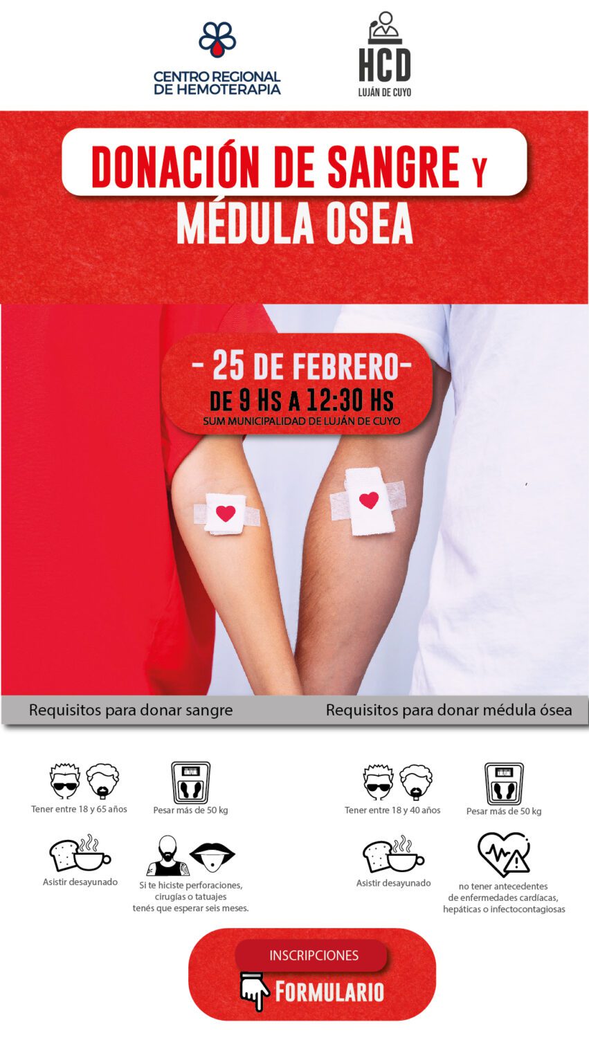 La Comisión de Salud del Concejo informó que se llevará a cabo en ese lugar, el 25 de febrero, de 8hs a 12,30 hs el inicio de la campaña 2026 de donación de sangre y médula ósea.