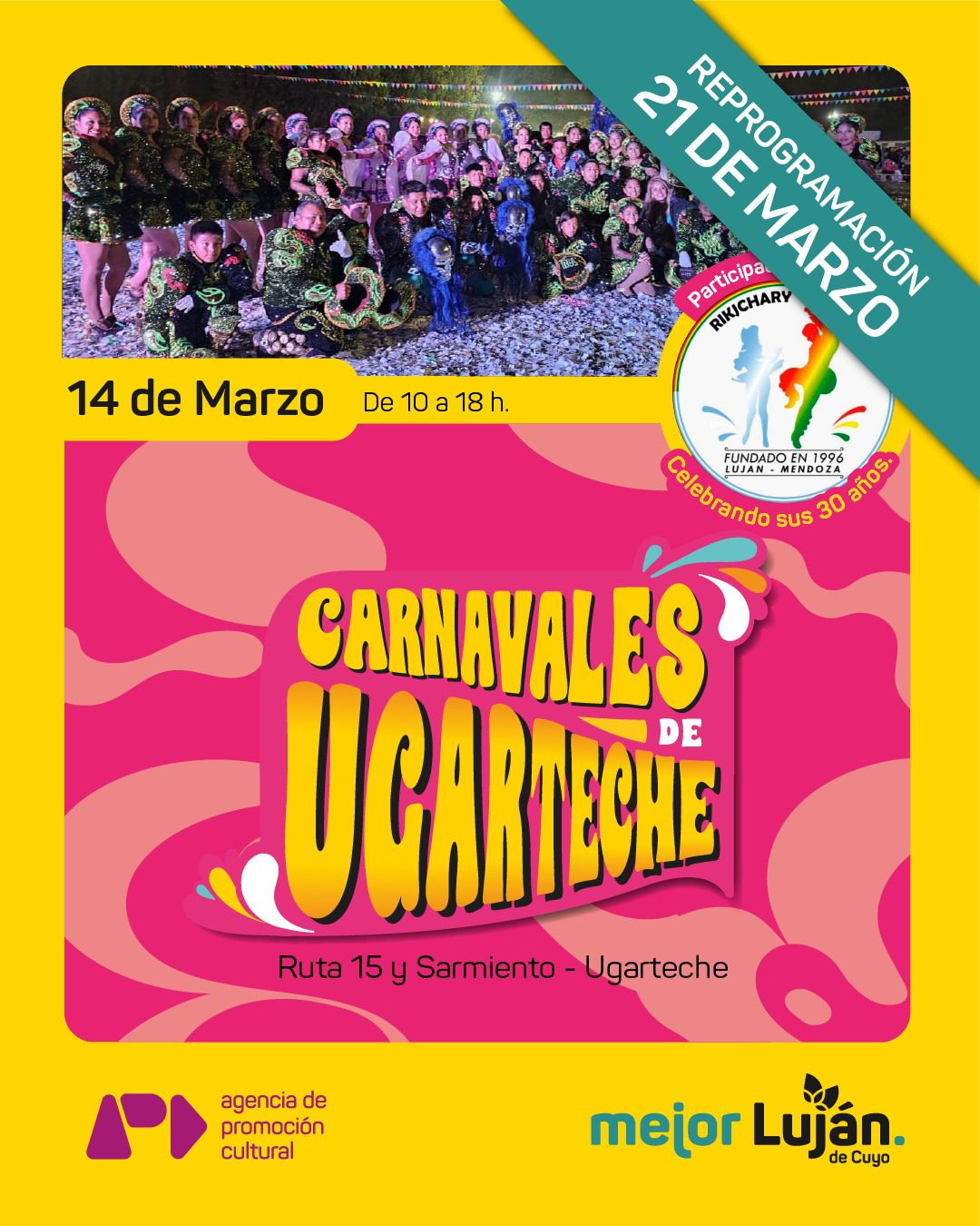 Finalmente, esta edición contará con un momento especial: la participación de Rikjchary Llajta, histórica agrupación lujanina fundada en 1996, que celebrará sus 30 años de trayectoria en el marco de la fiesta más popular y significativa del sur de Luján de Cuyo.