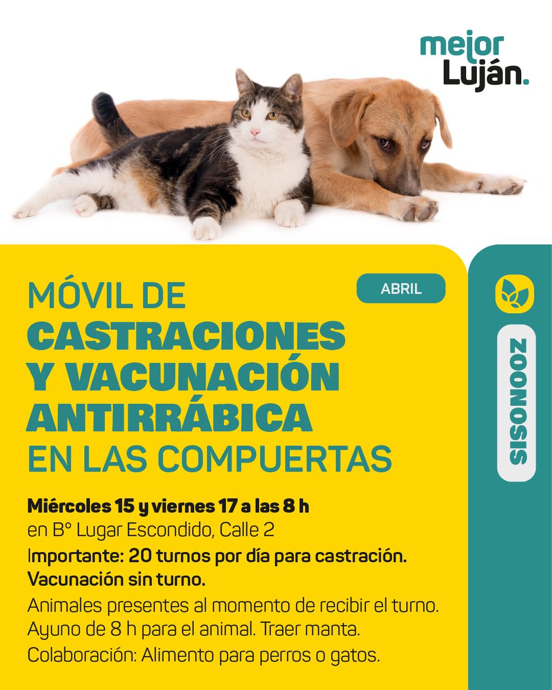 En el marco de las políticas de bienestar animal y salud pública, el Municipio estará presente este miércoles 15 y viernes 17 de abril desde las 8 de la mañana en el barrio Lugar Escondido, sobre Calle 2, acercando a los vecinos una nueva edición del móvil veterinario.