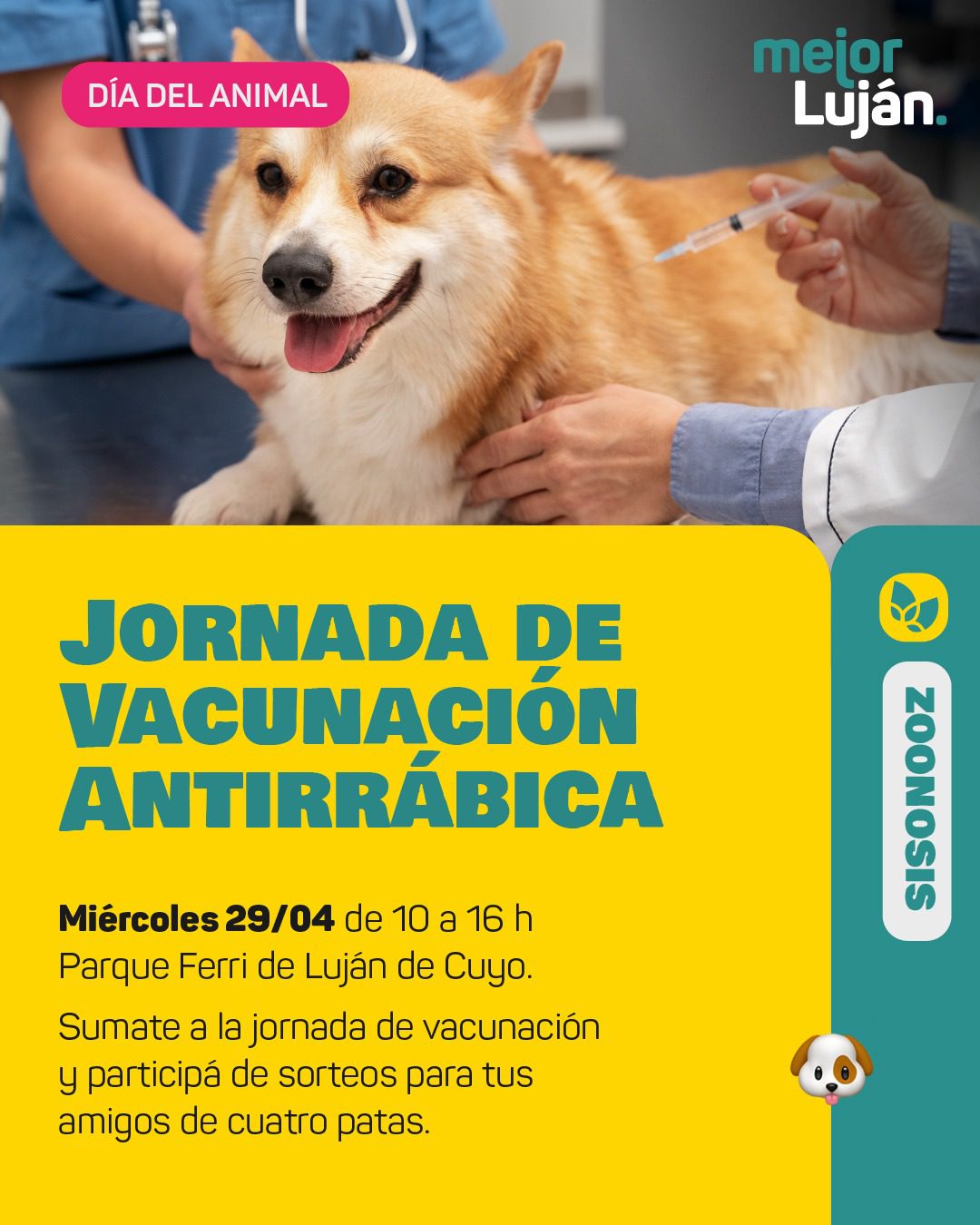 En el marco del Día del Animal, la Municipalidad de Luján de Cuyo, de la mano del área de Zoonosis, realizará una campaña de cuidado responsable de mascotas con vacunación y sorteos para las mismas.