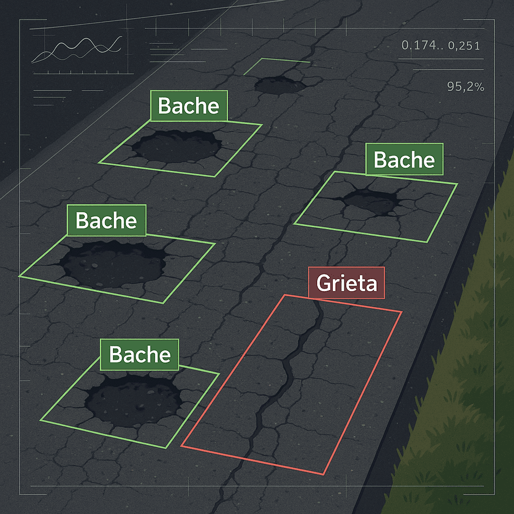 En la detección de baches mediante cámaras y algoritmos de visión por computadora.